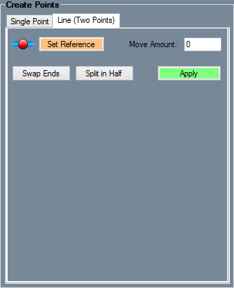 Create single points under the "Line (Two-Points)" tab. By selecting a single line on the part, or two points users can create a line in order to place a Pickpoint on it. The "Move Amount" value field creates a point along a selected line at a specific distance from the end. The "Split in Half" button places a point directly in the middle of the line or two points. The "Swap Ends" button changes the point from on end of the line to the other end.